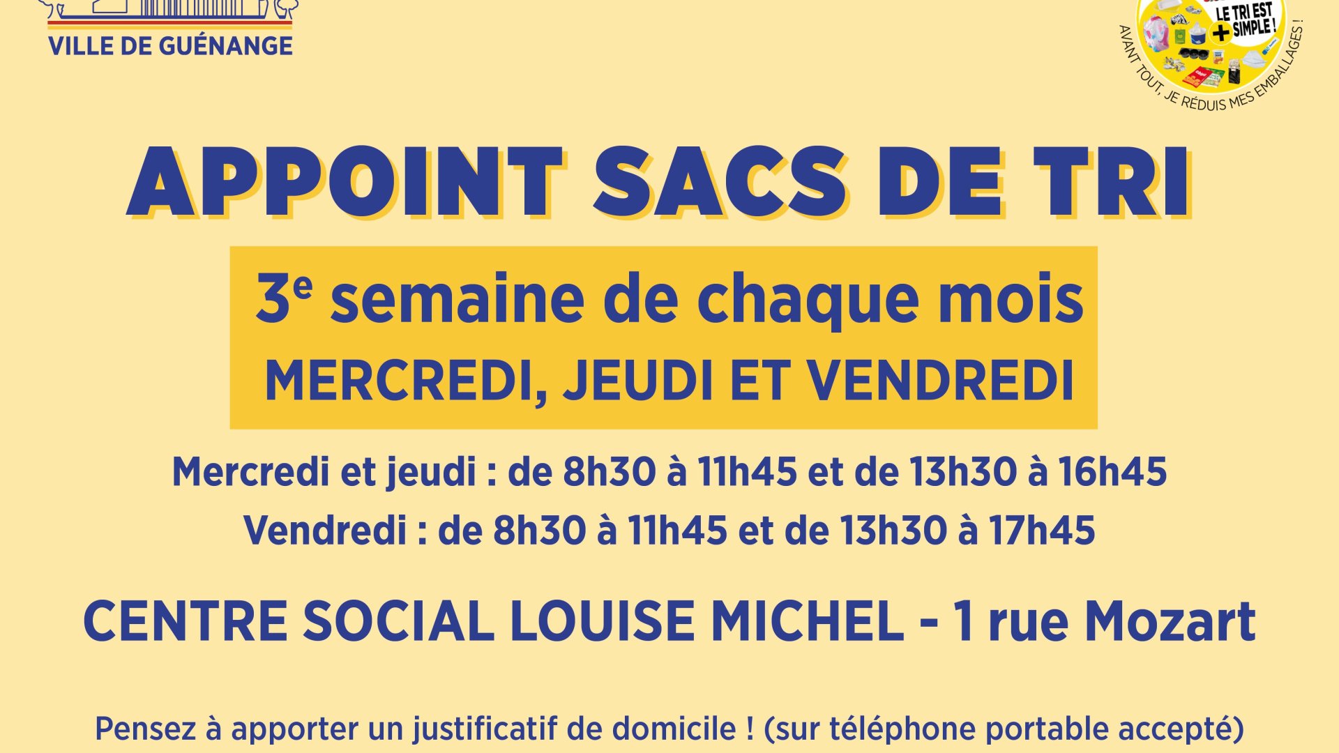 La troisième semaine de chaque mois présentez-vous au centre social Louise Michel aux horaires d'accueil : mercredi, jeudi de 8h30 à 11h45 et de 13h30 à 16h45 et le vendredi jusqu'à 17h45.