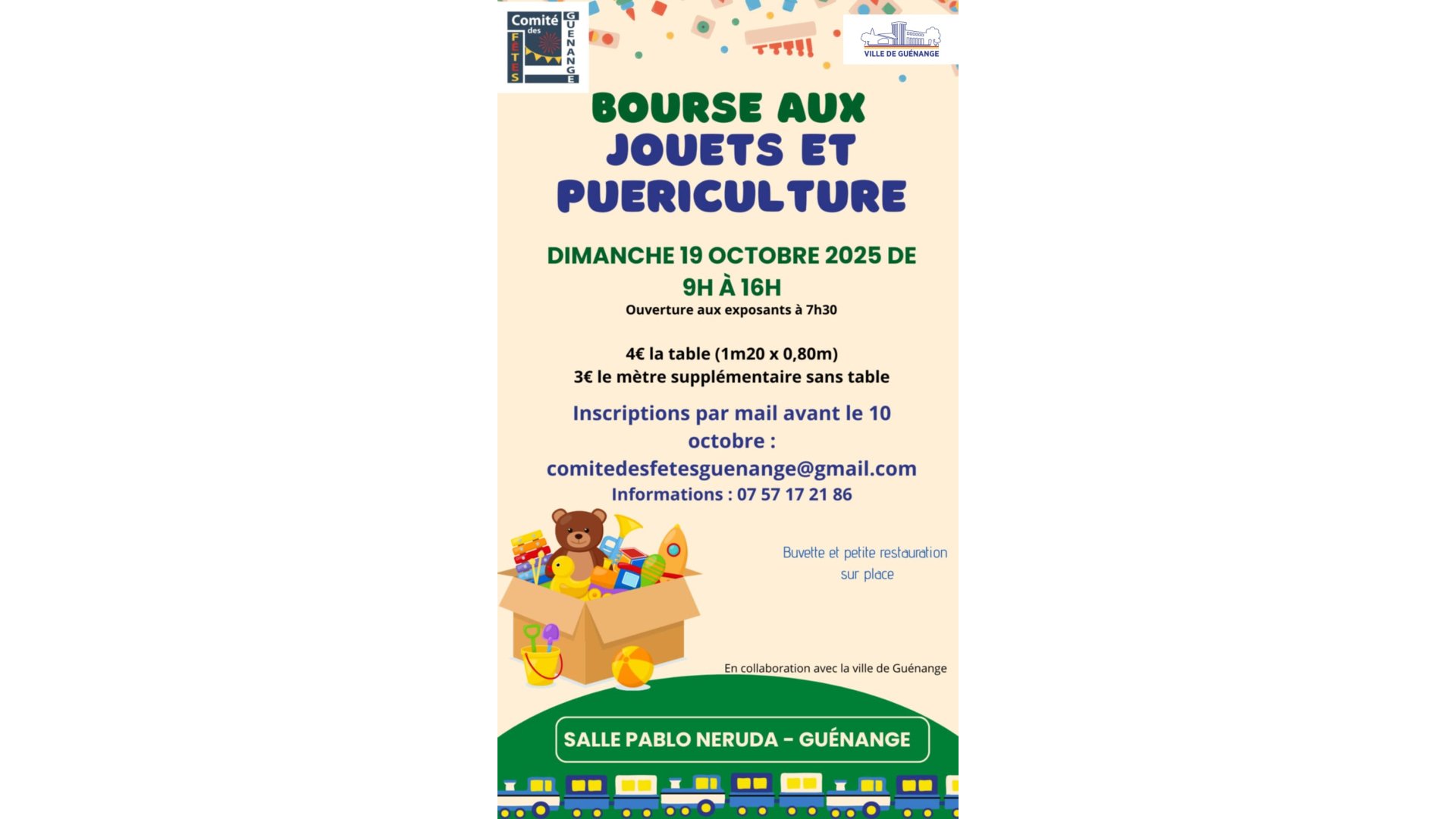 Bourse aux jouets et puériculture Bulletin d'inscription à demander par mail - attention places limitées
