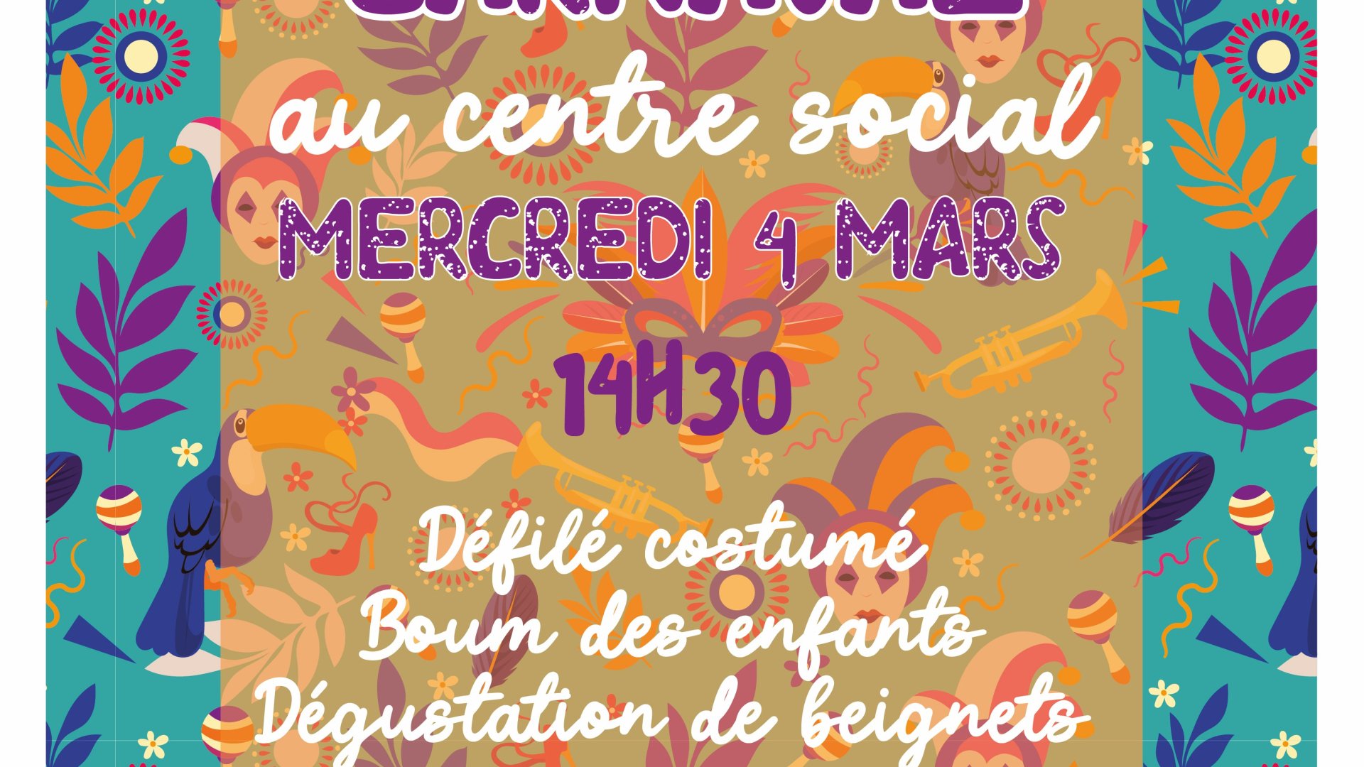 Petit circuit déguisé jusque devant la mairie et retour au centre social pour une boum et une dégustation de beignets jusque 16h30 !