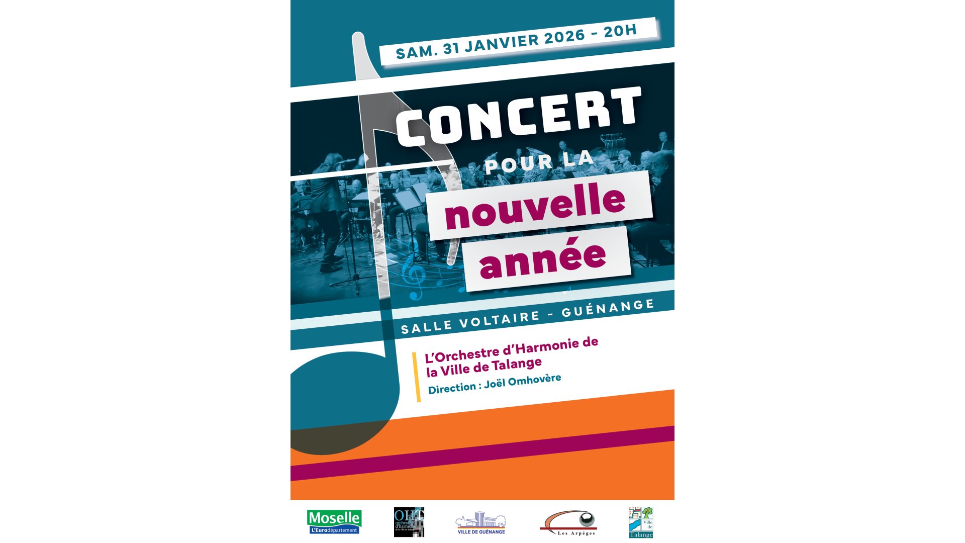 Sous la conduite de Monsieur Joël Omhovère, l'orchestre d'harmonie de la ville de Talange se présentera avec son programme 2026 pour célébrer la nouvelle année à la salle Voltaire. Un concert organisé par l'école de musique Les Arpèges en collaboration avec la Commune de Guénange.