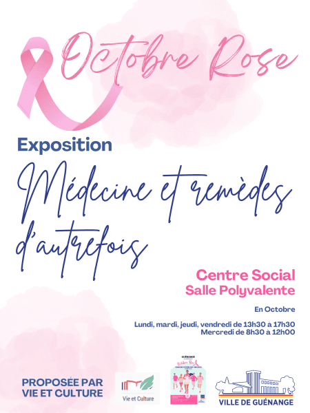 Pour Octobre rose, l'association Vie et Culture vous propose une exposition au centre social sur la médecine d'autrefois avec des anecdotes locales.