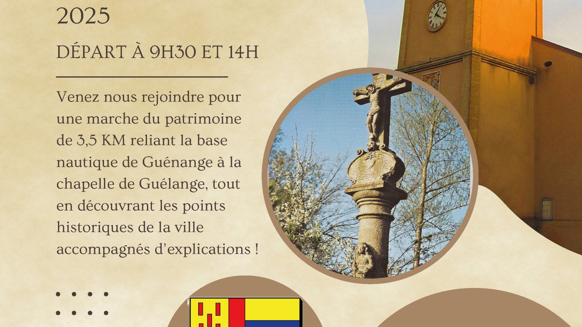 Marche du patrimoine de 3,5 km reliant la base nautique de Guénange à la chapelle de Guélange.