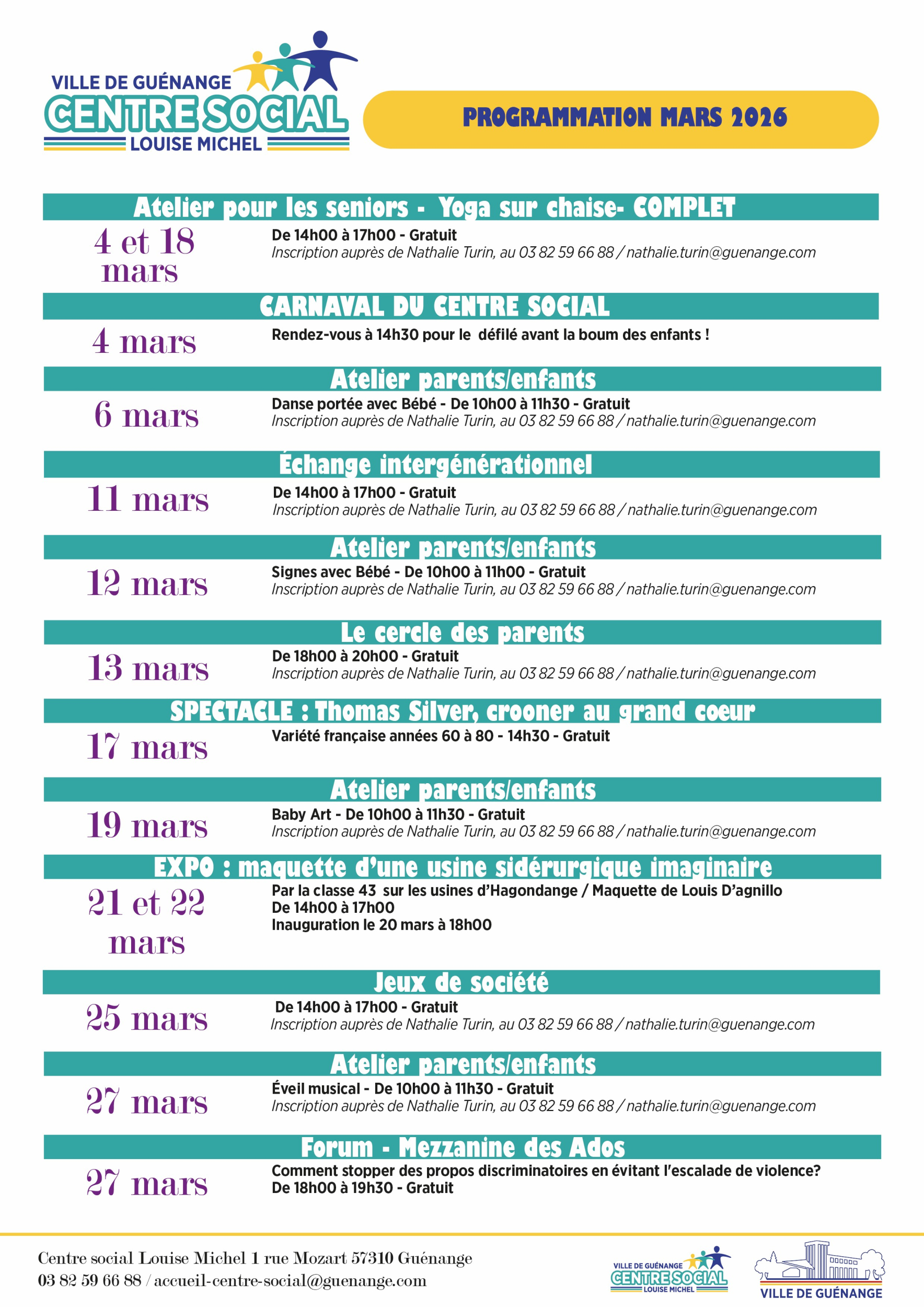 programme centre social mars 2026